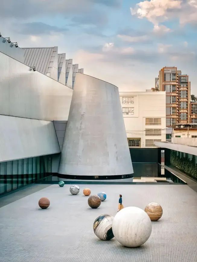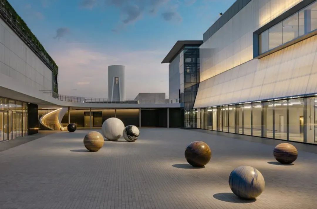 阿丽莎·柯维德的《Pars pro Toto》是馆内屈指可数的永久装置之一。作品由11颗大型石质球体构成,有人视其为静谧的小行星,也有人联想到散落的巨型弹珠。这些球体以充满诗意的布局凝聚了庭院空间,形成一场关于行星系统、物质存在与冥想感知的静默对话。