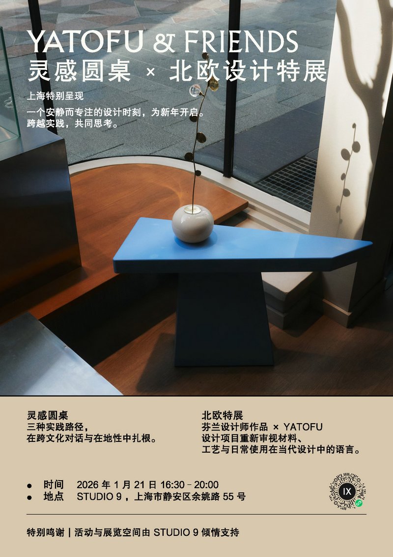2026年新年伊始,由跨文化设计工作室 Yatofu Creatives也兜设计策划的“Yatofu & Friends 灵感圆桌 × 北欧特展”在上海设计地标 STUDIO 9 顺利举行。本次活动以「北纬之间」为主题, Yatofu邀请了设计路上的挚友——间则jianze与loof.design,与现场展出的北欧设计师的作品,共同探索设计生成的思考层次。通过空间展陈与深度对话,三组创意团队与现场观众共同探讨了在当代语境下,设计如何突破地域标签,通过材料研究、视觉叙事及空间重构,转化为可感知的文化经验与生活方式。