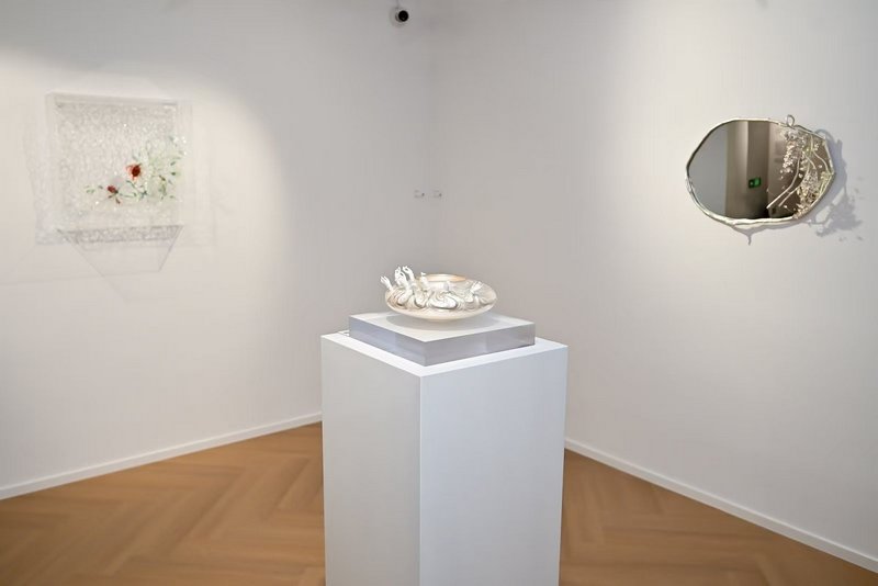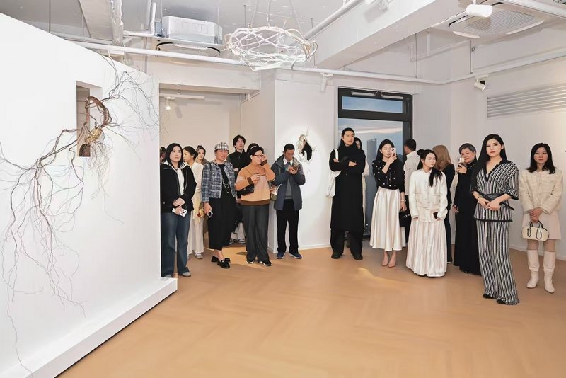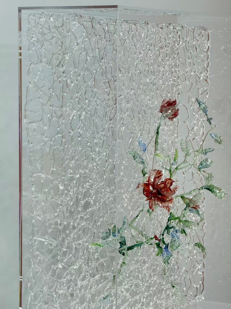 同一空间三件作品共抒一意,皆是向上生长、生生不息的精神内核。苗银以古法铸艺塑就枝干,生发出灵动苗花;陈英泽作品《子》银筑心脉奔涌间,血管舒展成向上的姿态;顾天予的玻璃艺术则凝萃脑电波的思维律动,绽放出馥郁美好的玫瑰。三件作品各展巧思,却同释本次展览“生生不息”的核心主题,也映照出当代人在快节奏的生活里,对万事万物始终怀有的美好期许与热忱希望。