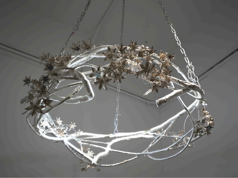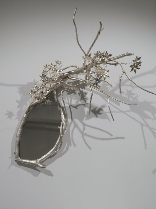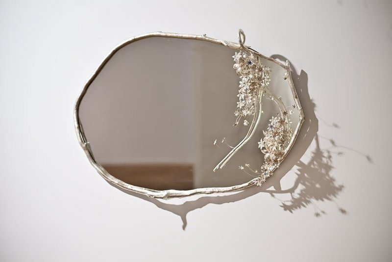 通过⾦属铸造、宝石、苗花、玻璃等不同媒材结合,选择镜⼦做载体,通过当代的⼿法转化,将非遗传统⽂化和传承匠人的相融合,将我们从纷繁世界中抽离,让我们重新审视自我。镜子,无声的讲述者,它记录下我们的成长和变化,是我们人生旅程的见证者,同时祝福和陪伴会永久相随,愿曼妙的枝桠可以穿越时空的壁垒从过去到未来,每一粒晶莹的宝石都是瞬间的你,每⼀朵苗花都是绽放的祝愿,每⼀片炫彩的玻璃都是一种记忆的⾊,⽉光皎皎点点交织,破碎重组,燃出更美的你。作品通过⾦属铸造、宝石、苗花、玻璃等不同媒材结合,选择镜⼦做载体,通过当代的⼿法转化,将非遗传统⽂化和传承匠人的相融合,将我们从纷繁世界中抽离,让我们重新审视自我。镜子,无声的讲述者,它记录下我们的成长和变化,是我们人生旅程的见证者,同时祝福和陪伴会永久相随,愿曼妙的枝桠可以穿越时空的壁垒从过去到未来,每一粒晶莹的宝石都是瞬间的你,每⼀朵苗花都是绽放的祝愿,每⼀片炫彩的玻璃都是一种记忆的⾊,⽉光皎皎点点交织,破碎重组,燃出更美的你。
