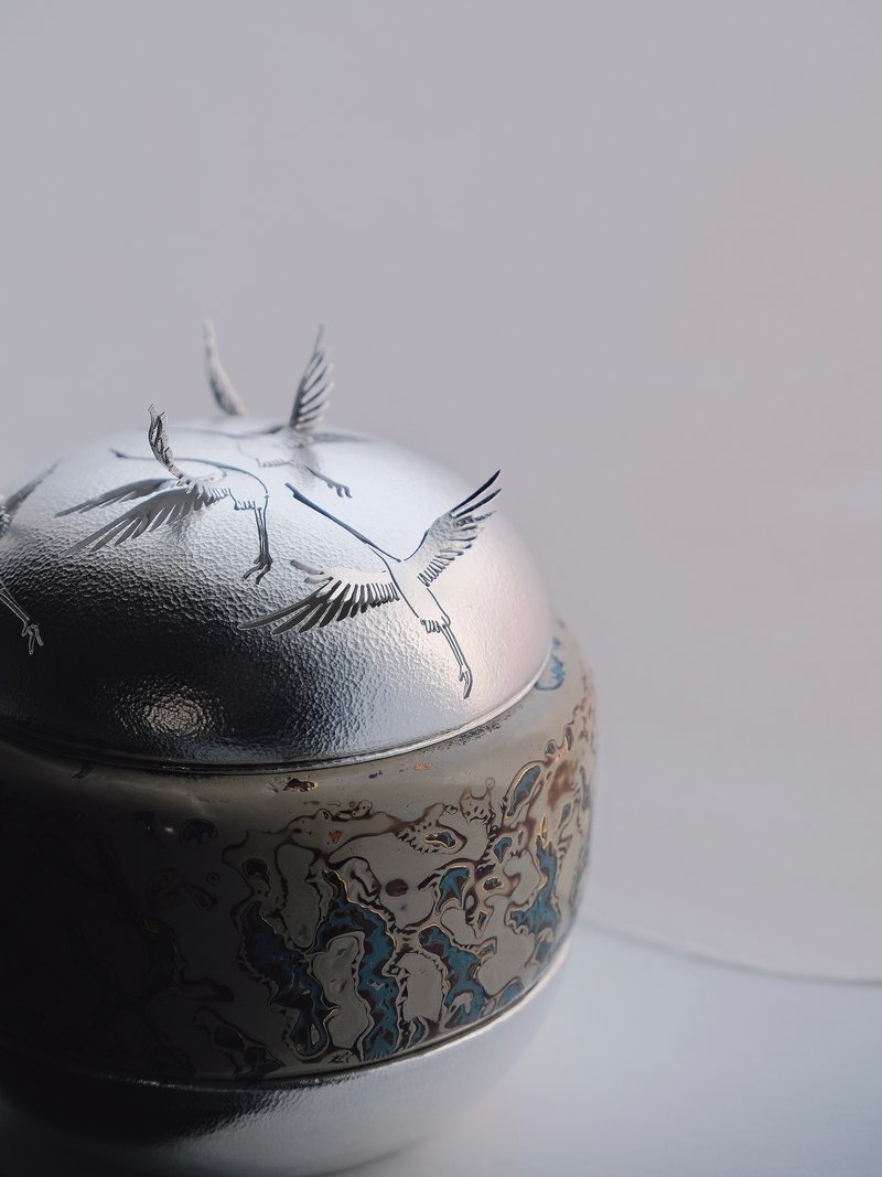 《瑞》用传统剪纸技法,在打平后的银盖上作半镂空纹样,形态各异,灵活生动。平面转立体的装饰逻辑,焚香时烟雾从空隙飘出,萦绕四周,祥瑞具现。