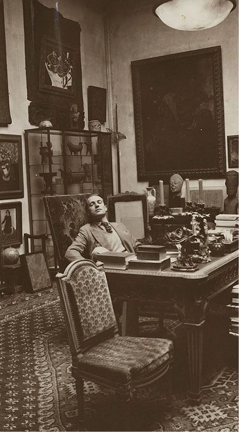 摄于亚封斯·卡恩坐落圣日尔曼镇的宅邸中,《黑衣少女》悬挂在照片左下的墙壁上。(约1930或1938年)