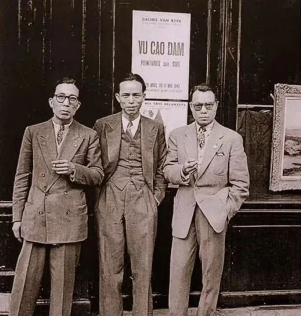 梅忠恕,武高谈,黎谱于巴黎 Van Rick 画廊前