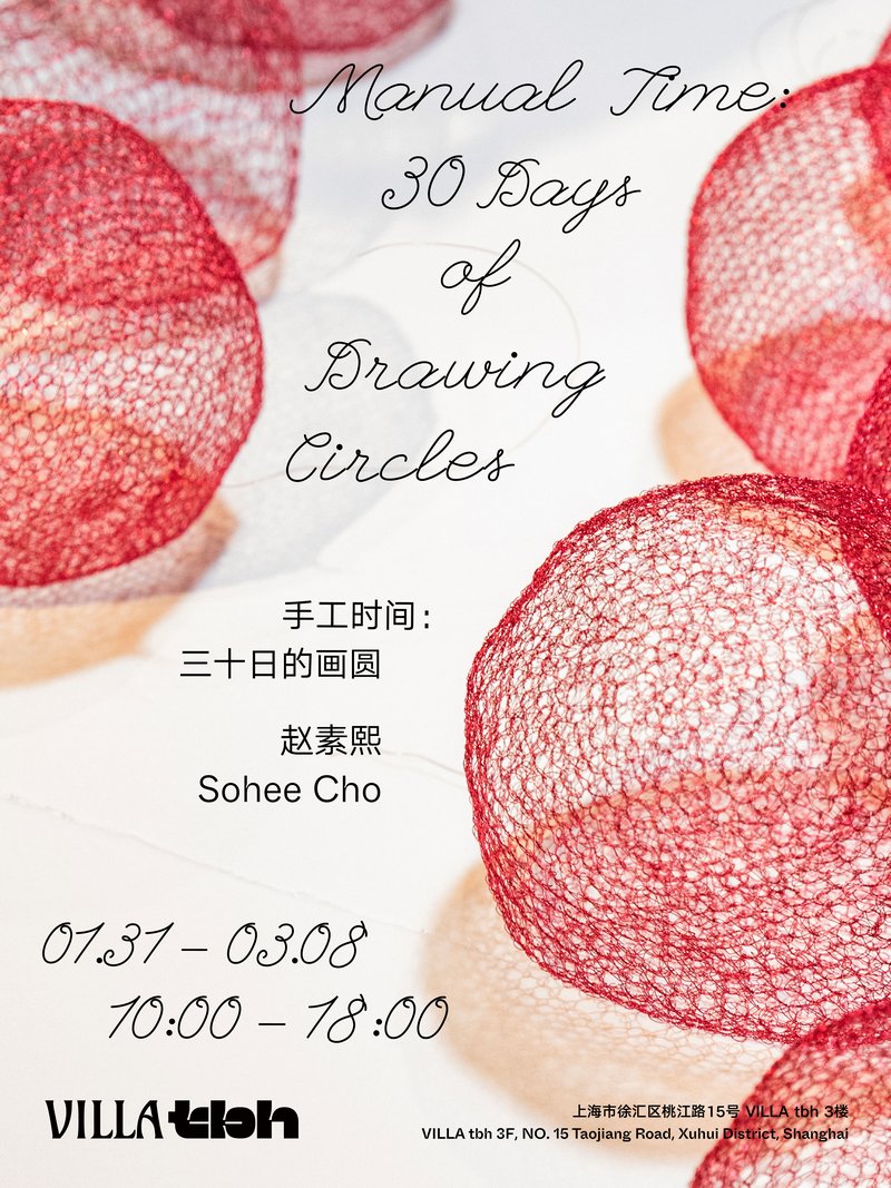 在算法定义节奏、注意力被无限切割的“加速时代”,当代艺术中的一个深层转向,是对“慢速”与“重复性劳动”的重新发现与赋权。艺术家赵素熙(CHO Sohee)在VILLA tbh驻留的结项展览《手工时间:三十日的画圆》,正是这一语境下静谧而有力的样本。本次展览试图通过身体与双手的重复性劳动,将艺术家在VILLA tbh度过的三十天时间加以物质化。这种重复性手工劳动,是一种无用的生产 ——即创造时间的重量、精神的轨迹,以及虚空的形式。赵素熙将时间简化为一种可计数的单位形态,并将时间本身从背景中提取出来,雕琢成可被视觉、触觉与冥想所感知的物质实体。