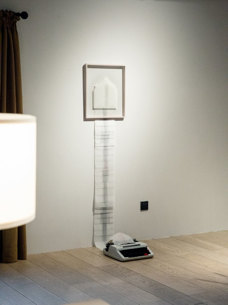 展览中潜藏的线索 —— 终身项目《信笺 —— 人生项目》,是理解赵素熙时间哲学的密钥。自2007年启动以来,以半透明丝绸与薄纸制成的《信笺 —— 人生项目》在18余年间层层堆积,已达成千上万张,达到了时间物理重量的累积。然而,当作品堆积至某一临界—— 直至无法再承载时间重量的阈值时,所有信件将被计划寄往匿名收件人手中任其流散。正如一切存在的意义需借由消逝方能完整,作品《信笺》亦唯有抵达消逝的彼岸,才终将得以完成。《信笺 —— 人生项目》在VILLA tbh继续进行着,艺术家在此期间使用打字机完成了三十封信件。驻留三十天的所有书信,都可被视为这个终身项目的一部分,成为一个空间化的“篇章”。