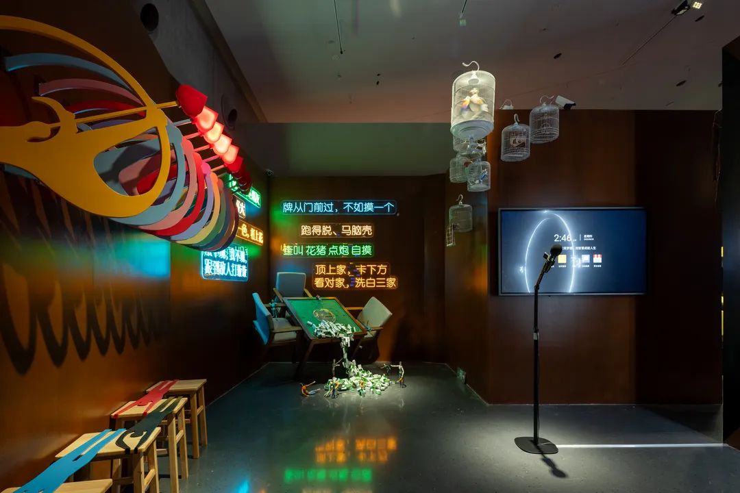 《鹂鹭七绝·歌唱》 冯羽 空间艺术装置 长1900×宽2300×高1000cm 定制彩色竹材 2026年