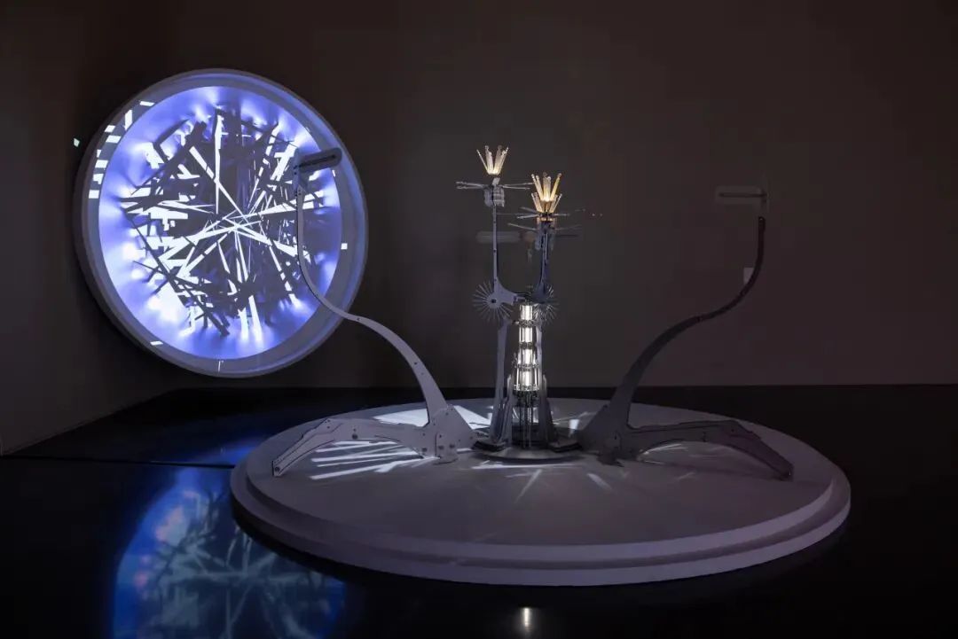 动态机械装置、 影像映射,400×400×260cm,铝、不锈钢、亚克力、LED光源、电子元件,2023
