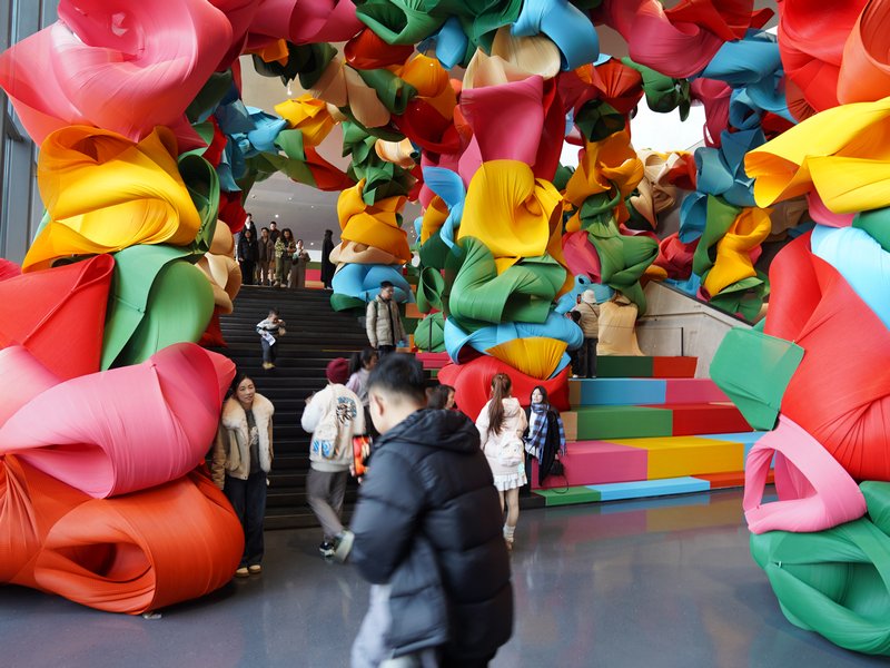 冯羽的《鹂鹭七绝・歌唱》则将杜甫笔下的诗意,酿成了新春的热闹与缤纷。行走在竹影之间,彩色的光影在地面流转,仿佛能听见诗意与烟火碰撞的音律。这份传统文人的雅致,与成都的市井活力相融,恰是新春里最动人的文化韵味。