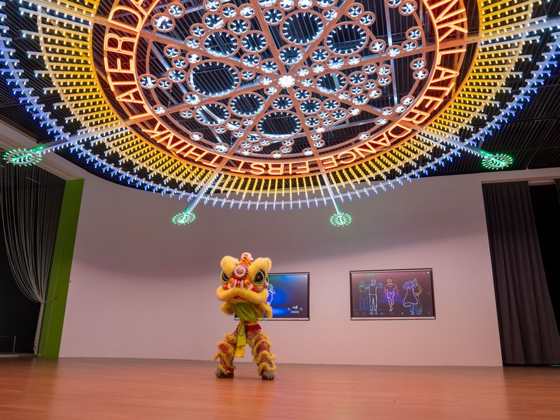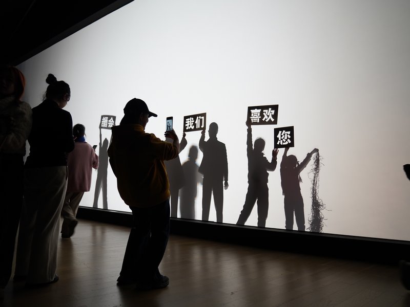 如果你相信“念念不忘,必有回响”,那么这件作品你一定要来打卡。《尘光万象》营造出暗室里一场温柔的视觉盛宴——观众在悬垂的纸幕后欢笑,或是一起玩耍传统皮影,或是将美好的期许投射出来。不妨放慢脚步,让光影落下,在静谧中感受成都的浪漫与安宁。
