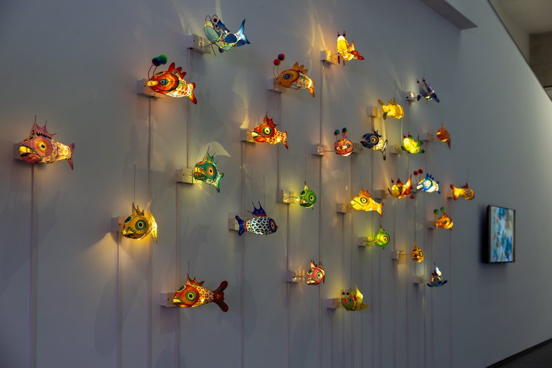 旁边安德烈・瓦西列夫斯基的《鱼没有声音(亚洲版)》,则用一场声影盛宴,诠释了共鸣的意义。27条色彩缤纷的中国纸鱼逆流游动,象征着丰饶与跃龙门的希冀,54段中英文方言人声汇聚在一起,便是最动人的异国祝福。