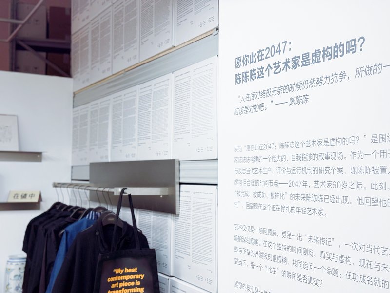 该展览由周懿、陈功担任策展人,以艺术家陈陈陈作为一个时代的“切片”展开。策展团队将时间设定在2047年——艺术家60岁之际,在这一被预设为“完成”“成功”的未来节点中,艺术家回望自身的一生,也回望当下仍在现实压力中不断犹疑与坚持的年轻创作者。展览以回顾展的结构呈现,却并非对既定历史的总结,而是一部仍在生成中的“未来传记”,也是对当代艺术家处境的隐喻性书写。