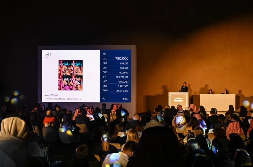 与首届“起源”拍卖相比,本次专场显著增加了西方现代大师的比重。拍品中包括巴勃罗·毕加索的三件作品,最高价为一幅160万美元的画作;一组七件来自罗伊·利希滕斯坦及其妻子私人收藏的作品;一幅安迪·沃霍尔的画作以略高于100万美元成交。值得注意的是,当晚约三分之一的拍品由沙特境内的买家竞得,印证了苏富比与本地藏家深化信任的战略成效。