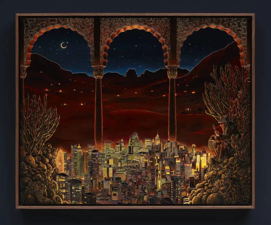 拍卖创下了一项标志性纪录:沙特艺术的重要先驱safeya binzagr《麦地那路上的咖啡馆》以210万美元成交,达到高估价的十倍。这一价格几乎将艺术家本人于2023年创下的沙特艺术家拍卖纪录提升了一倍。本场共有9位沙特艺术家的作品上拍,实现100%成交,沙特板块总成交额达430万美元,充分彰显了本土艺术市场的强劲活力。