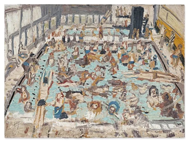领衔之作中,弗朗西斯・培根一幅极具传奇色彩的自画像尤为瞩目。1972年,培根痛失挚爱乔治·戴尔,创作陷入巨大震荡,这件作品正是诞生于那一时期的情绪废墟之上,画布上扭曲的笔触与痉挛的形象,凝结了艺术家内心最剧烈的风暴。两幅卢西安・弗洛伊德的人物肖像则贯穿其创作生涯的关键阶段,奠定了他作为当代肖像大师的基石。而英国具象画家莱昂·科索夫的《儿童游泳池》被誉为艺术家巅峰之作,粗粝厚重的颜料与近乎执拗的笔法,透露出对日常景象的深层凝视。