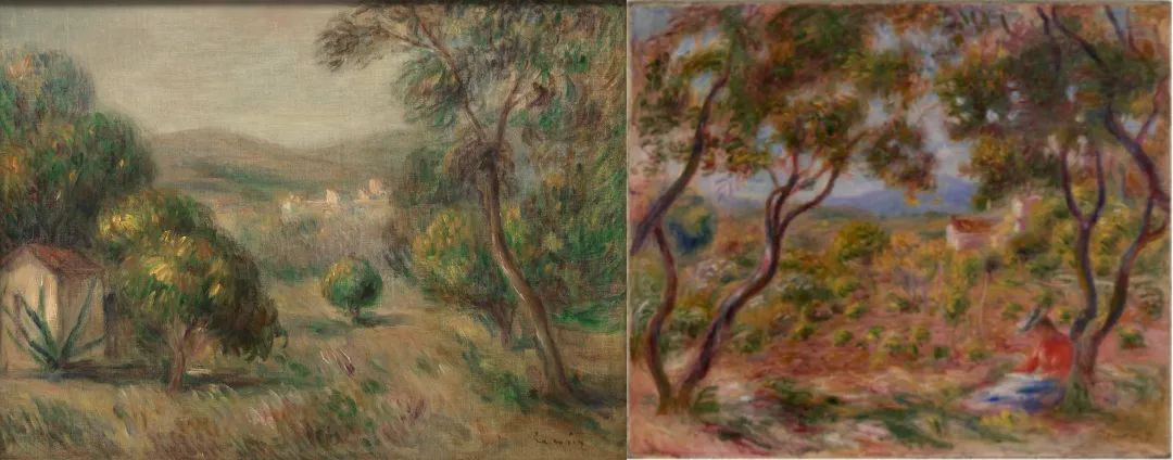 左:是次拍品;右:皮埃尔·奥古斯特·雷诺阿,《卡涅的葡萄园》,1908年,布鲁克林博物馆藏(Brooklyn Museum)