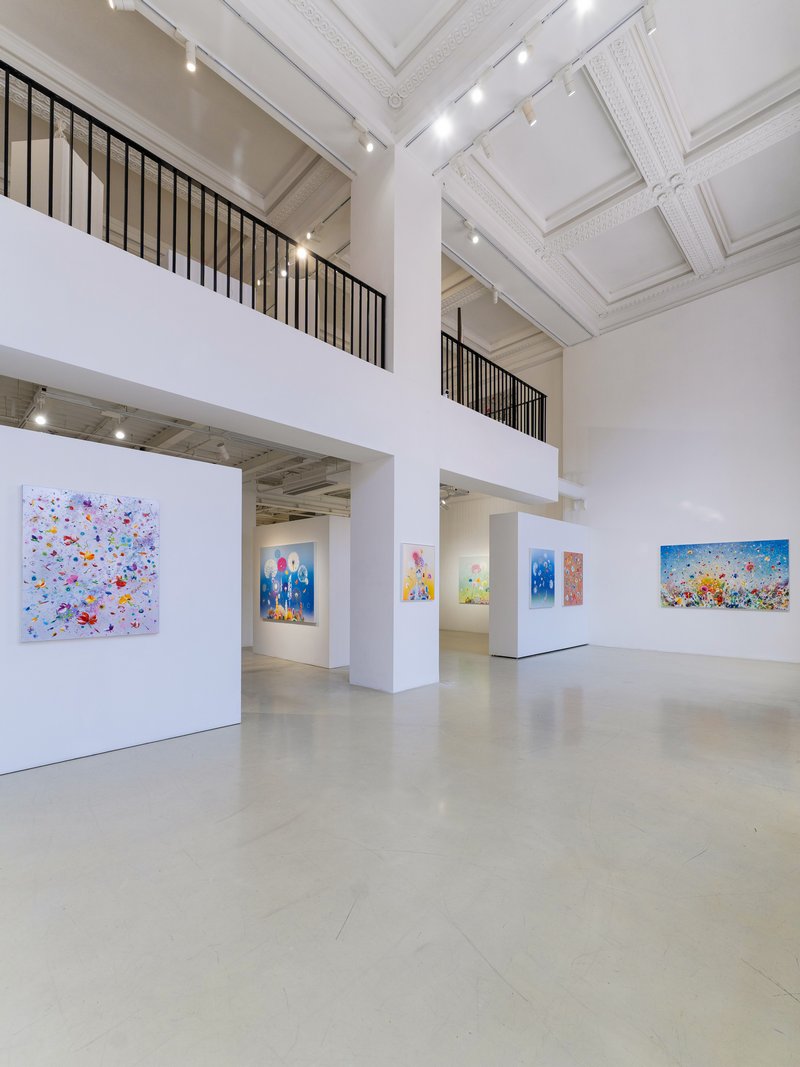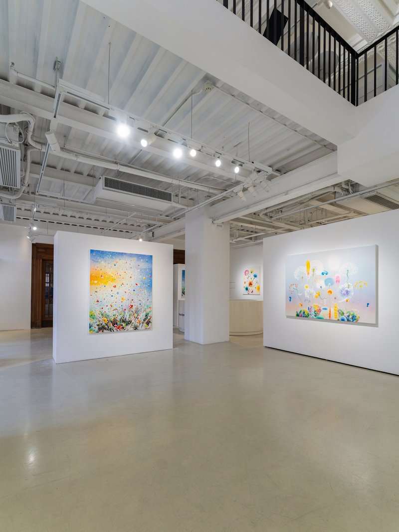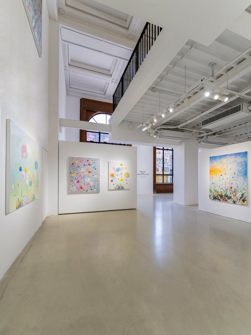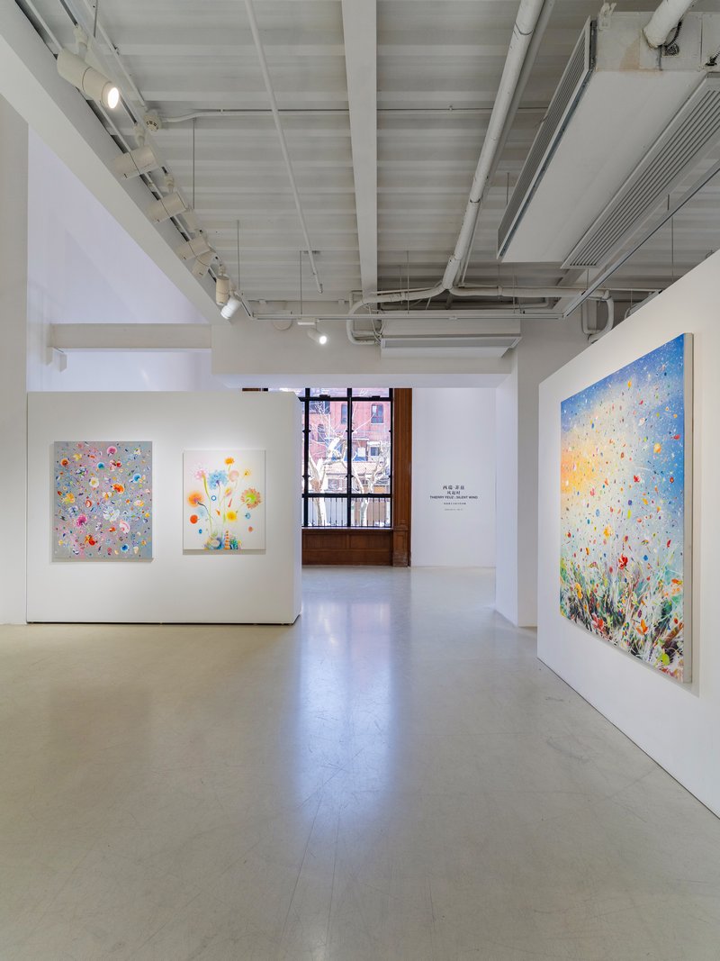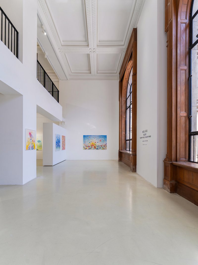 本次个展「西瑞·菲兹:风起时」呈现艺术家的近期新作与经典系列:《春之颂·埃斯特雷尔》(Primavera Esterel),以湿笔画技法致敬波提切利的名作《春》。在橘黄渐层与朦胧笔触间,虚幻的缤纷花朵映衬着游移的色彩光晕,仿若自然与梦境激荡出的浪漫旋律。《微风·全景》(Silent Winds Opus Panorama)作为经典系列,记录了风吹拂过田野的时刻,花草漫天飞舞,定格生命万物随微风吹起的美好瞬间。《银色图谱·珊瑚》(Silver Winds Corail))与《金色图谱》(Golden Atlas)以金银绚丽的色系,在串串移动、纷飞的灿烂花瓣间,勾勒出盛世的繁华与生命力。