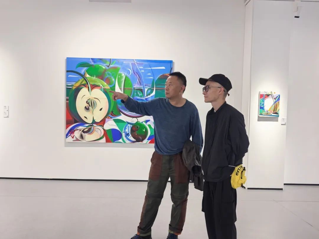 参展艺术家付美军(右)在开幕式现场