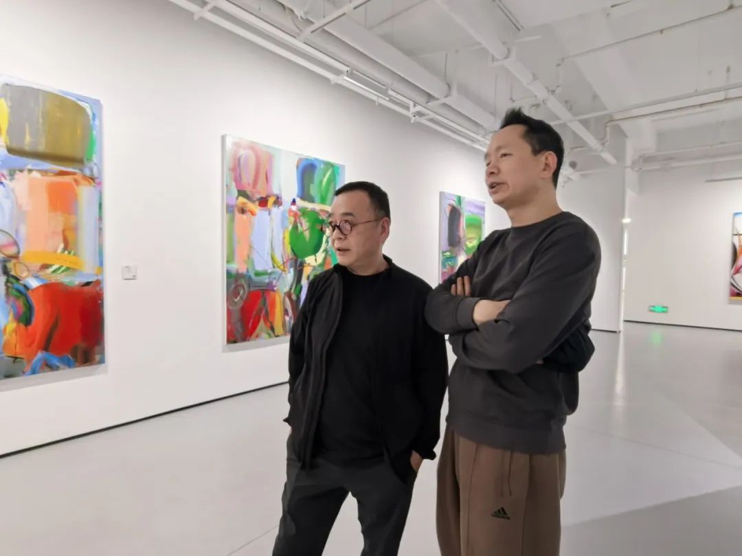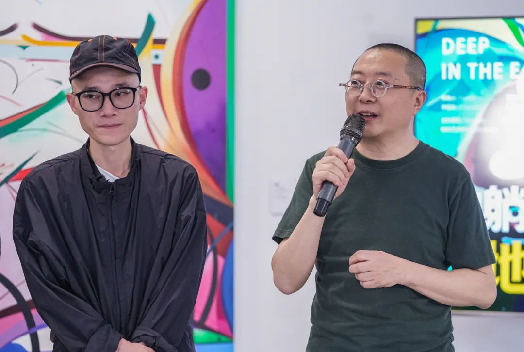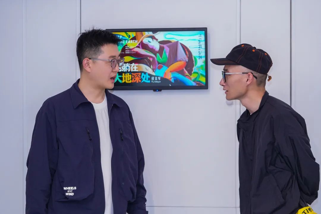 艺术家、湖北美术学院教授魏光庆(左),FENART工作室主理人黎洪波(右)在开幕式现场