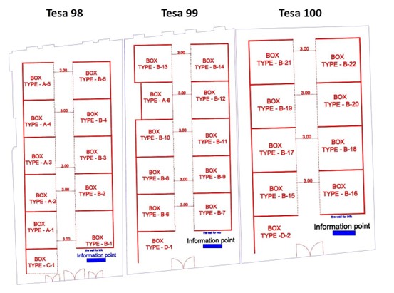 The full space will be divided into standard Boxes, each one can be booked individually or rearranged according to the exhibitor's needs.